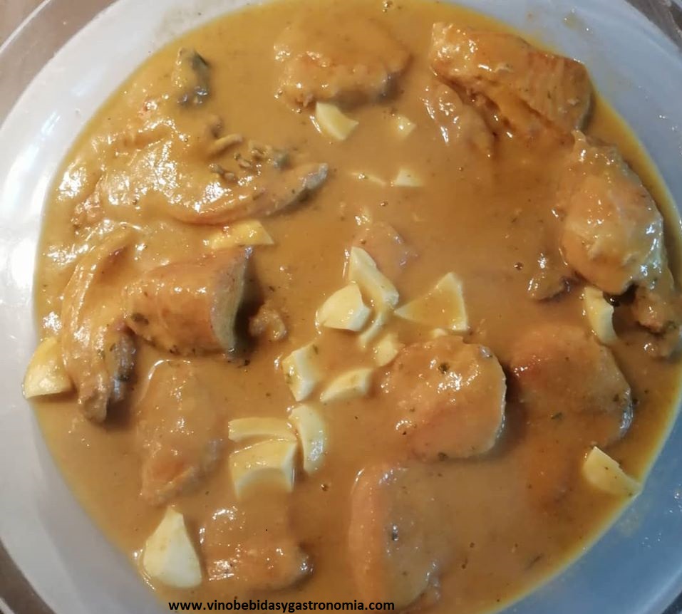 1 pollo (troceado),1 cebolla,3 dientes de ajo, 2 huevos, 2 rebanadas de pan,15 almendras,250 ml de vino blanco,250 ml de caldo de pollo,aceite de oliva virgen extra,hebras de azafrán,sal,pimienta y perejil.