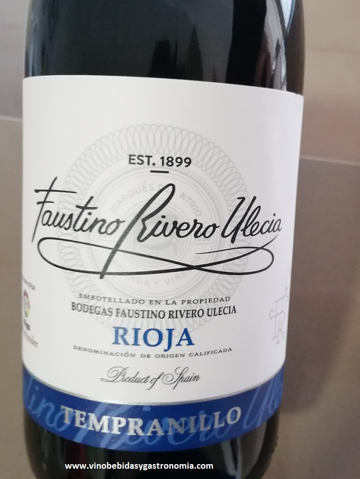 Vino Faustino Rivero Tempranillo Joven. Bodega: Hacienda y Viñedos Marqués del Atrio, S.L. D.O.Ca. Rioja. Uva: 85% Tempranillo y 15% Garnacha. Notas de cata: Color rojo rubí brillante con intensidad media. En nariz es muy aromático en la que predomina la fruta roja madura y algo de regaliz. En boca es equilibrado, con un retrogusto en el cual encontramos las mismas notas de cata que en nariz: fruta roja madura y algo de regaliz. Final largo. Maridaje: Todo tipo de carne.