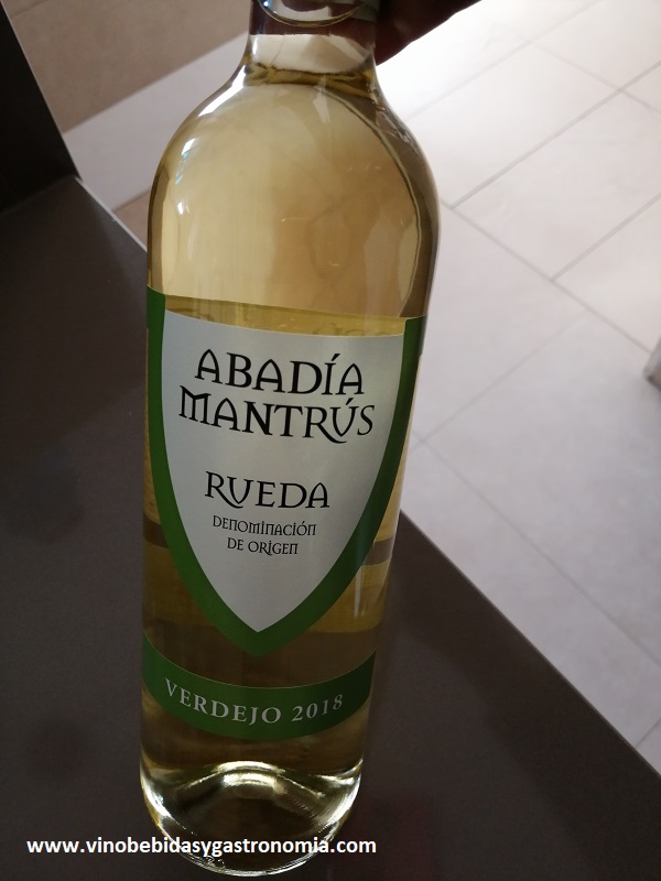 Vino Abadía Mantrús Verdejo 2018. Bodega: Altos de Ontañon, S.L. D.O Rueda. Uva: 100% Verdejo. Notas de cata: Color pajizo intenso. En nariz tiene intensidad media, donde predomina la fruta de hueso, como melocotón y notas herbáceas. En boca es equilibrado, con predominio también de la fruta de hueso pero apareciendo notas a fruta tropical. Final corto. Maridaje: Arroces, pastas y pescado blanco.
