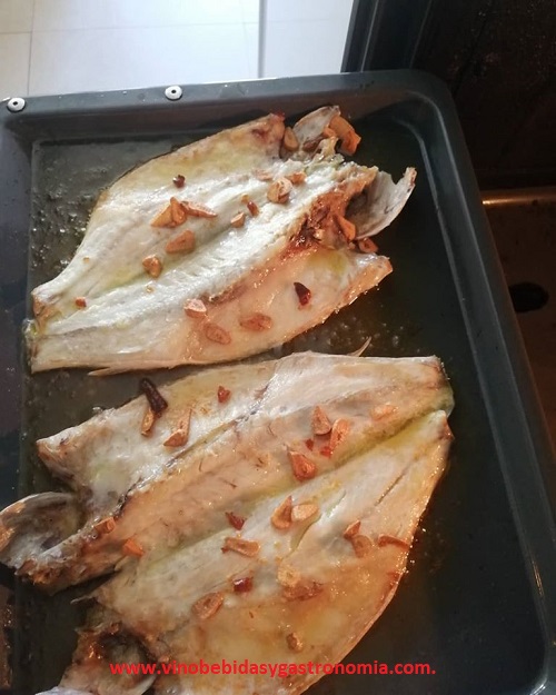 Preparation: Preheat the oven to 180 °C. Meanwhile we clean and dry the sea bass with a paper towel and we put them on the baking sheet with a little olive oil and a little water. When the oven is hot, we introduce the baking sheet with the sea bass and bake them for 40-50 minutes depending on the size of the sea bass. When we see they are almost ready, in a pan we fry some garlic and some broken chillies and add them to the sea bass. Bake a little just above to brown a little and ready to eat !!!!!