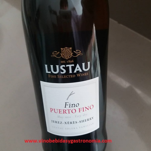 Wine fino Puerto Fino. Lustau wineries. D.O Jerez-Manzanilla. Grape: Palomino Fino. Tasting notes: Straw yellow colour with golden highlights. When you smell, it has a very high intensity with great complexity and you can find aromas of almonds and other nuts, salinity, smoked, yeasts and some white fruit. When you taste, it is balanced with a good body, very complex with flavors of nuts and smoked but appearing to a greater extent those salt notes. Very long finish. Pairing: Embutidos, seafood, olives, fish and sushi.