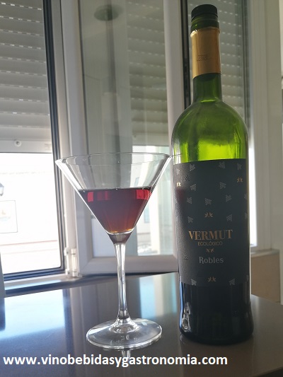 Vermut ecológico Robles. Bodegas Robles. D.O Montilla Moriles. Uva 100% Pedro Ximenez. Notas de cata: Color ámbar oscuro con ribetes dorados. En nariz encontramos sobretodo aromas a pasas y miel fruto de esa crianza de entre 6 y 8 años. También encontramos aromas a cítricos sobretodo a piel de naranja con toques de limón. En boca encontramos un vino equilibrado con las mismas características que encontramos en nariz reforzando ese toque de vino generoso de Montilla-Moriles que es la base de este vermut con ese sabor a pasas y también toques a laurel. Final largo y persistente. Maridaje: Ensaladas, ahumados y postres con fruta.
